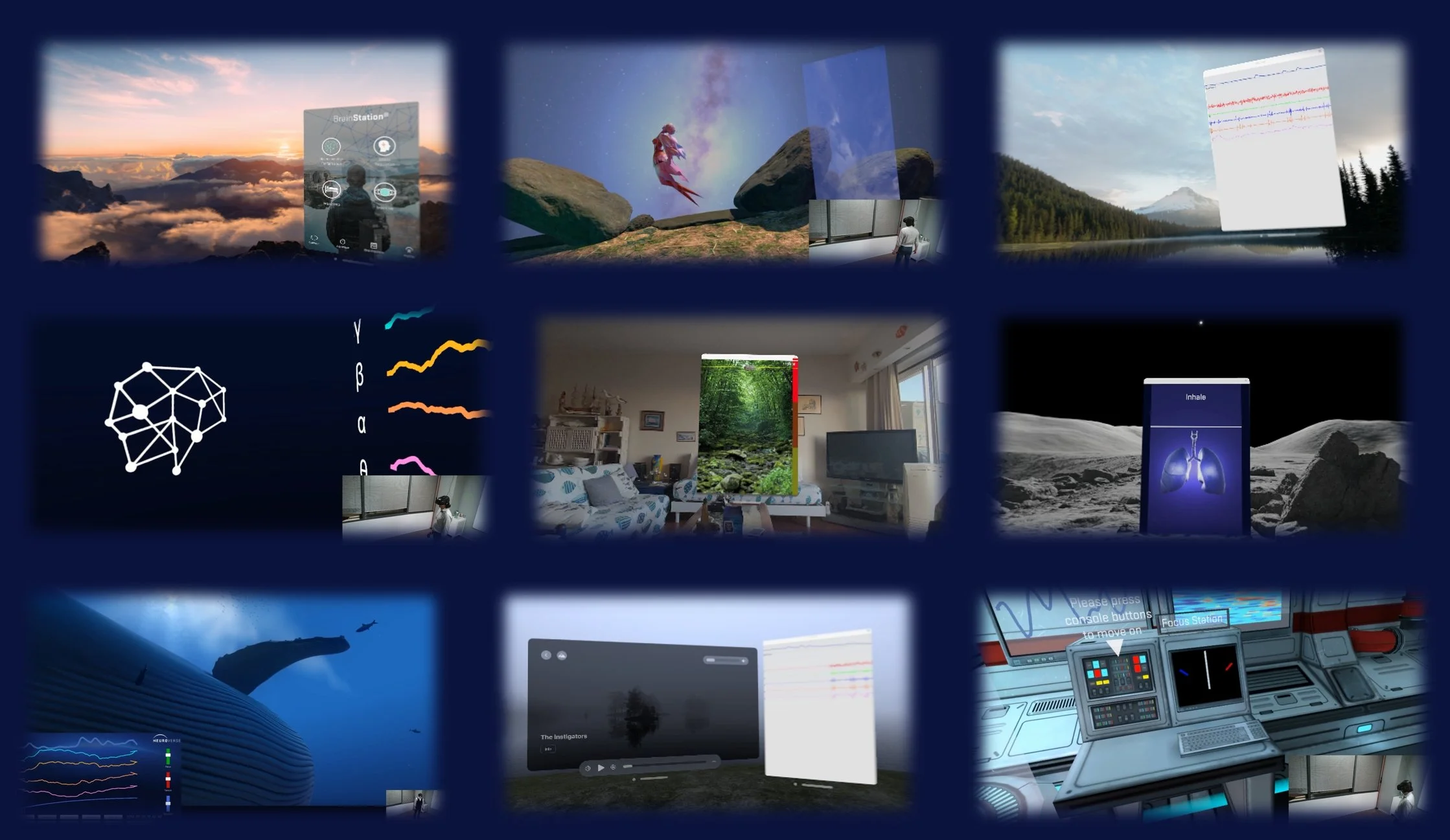 A brain interface that wirelessly connects to all main AR/VR headsets (Apple Vision Pro, HTC, Meta) enabling all the BrainStation app functionality in AR and immersive interactive environments.